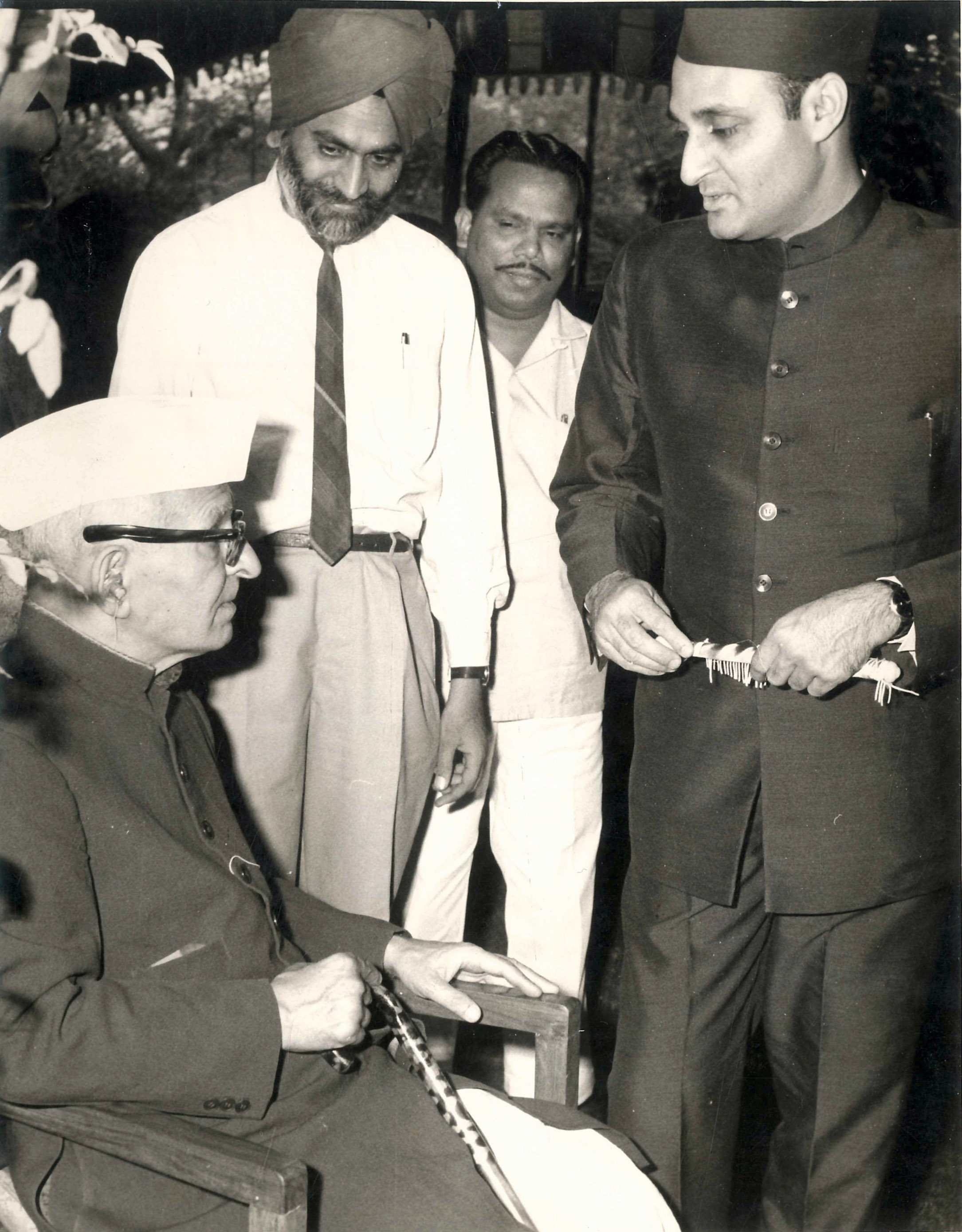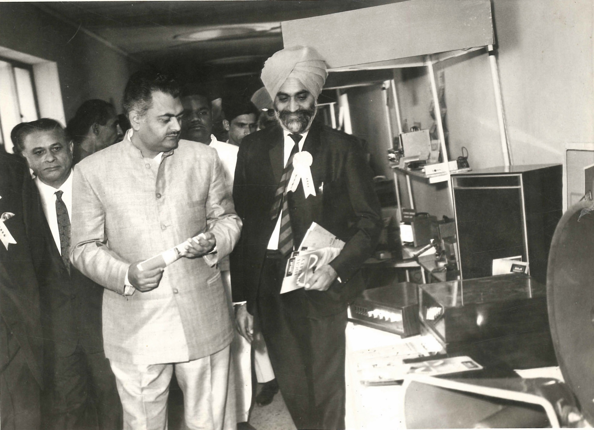 Prime Minister Jawaharlal Nehru inaugurates the Ahuja Radios factory, Okhla Industrial Estate โ€” April 1958. Accompanied by Indira Gandhi and Lal Bahadur Shastri.